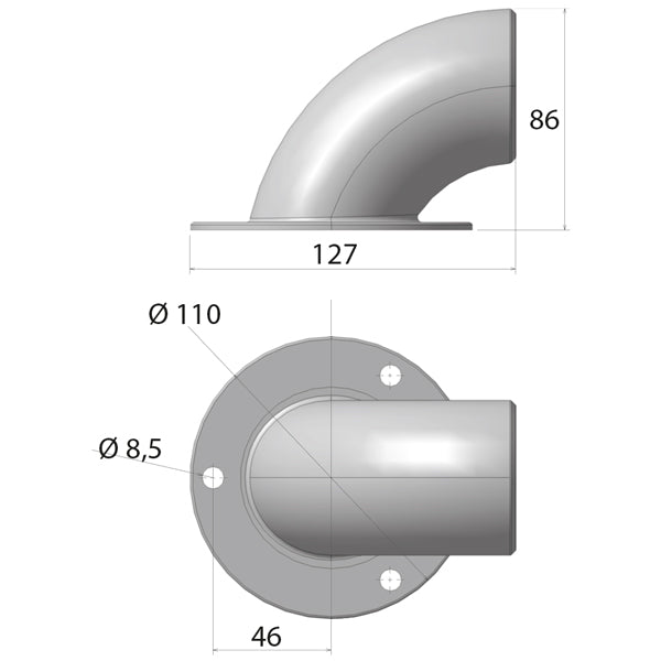 Rustfri stål kæde indføringsrør til Lofrans SX ankerspil, Ø 110 mm.