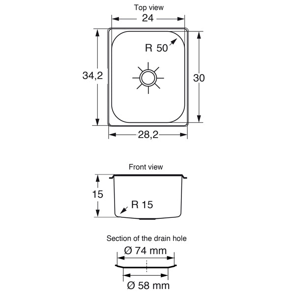 Vask fremstillet af rustfrit stål 18/10, 0,8 mm tykt for et robust og langtidsholdbart produkt. Spejlfinishen sikrer den bedste modstand mod korrosion, forhindrer vækst af bakterier og giver et elegant look. Det sænkede drænhul muliggør en fuldstændig dræning af vandet.