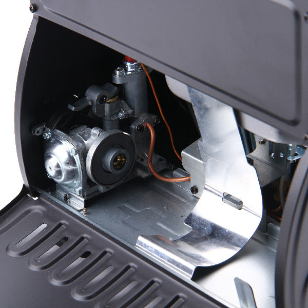 Keramisk brænder med piezo-tænding, magnetisk sikkerhedsventil og hus i koldgalvaniseret stål. . Den drives af en 220 g gaspatron (1094710)