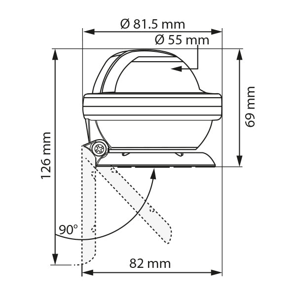 Fås med sort hus & kompasrose eller hvidt hus & kompasrose. Enkel montering med vinklingsbart beslag. Kan kompletteres med LED-belysning 1111581.