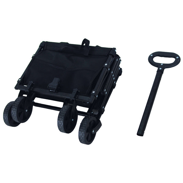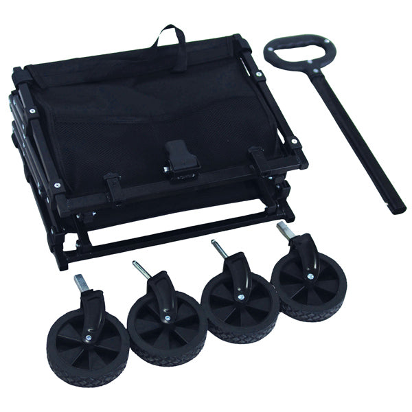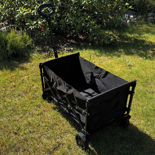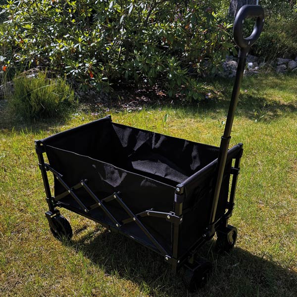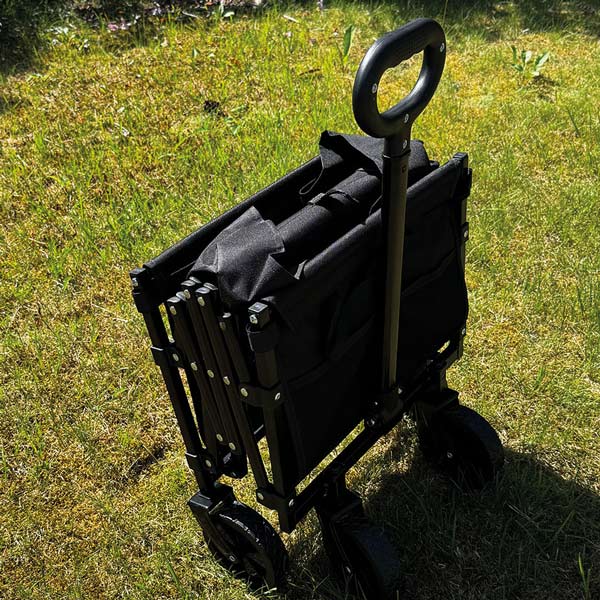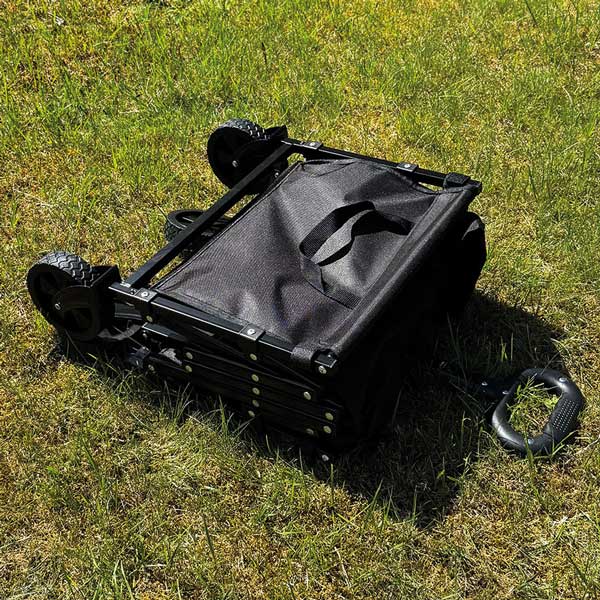 Med en simpel foldemekanisme optager vognen minimal plads under opbevaring. Hjul og håndtag kan også fjernes for yderligere pladsbesparelse.