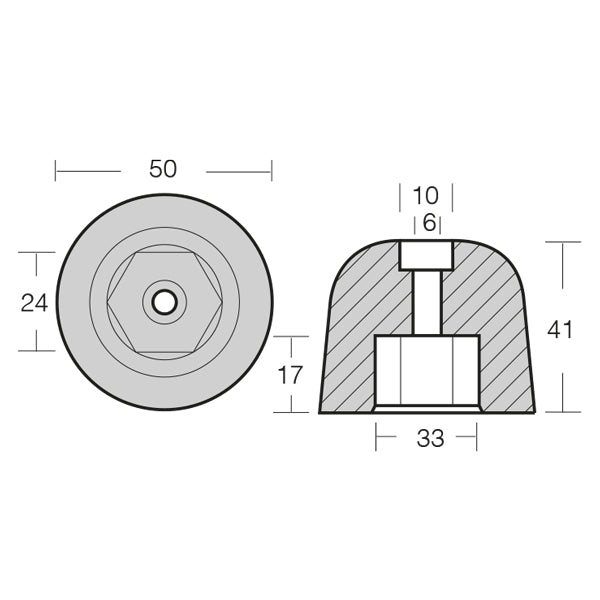 1852 Zinkanode Vetus bovpropel serie Ø50