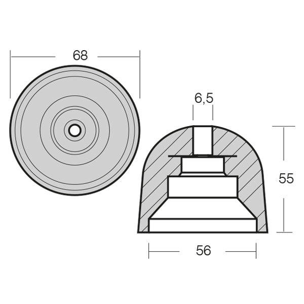 1852 Zinkanode Vetus bovpropel serie Ø68