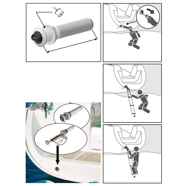 Består af 3 polypropylen trin og et rustfrit stålhåndtag monteret på Ø 3 mm polyesterline. Trinene er opbevaret i et polyamid rør med et gråt polypropylendæksel. Den evt. nødstedte fjerner låget, tager stigen ud og klatrer op ad stigen.