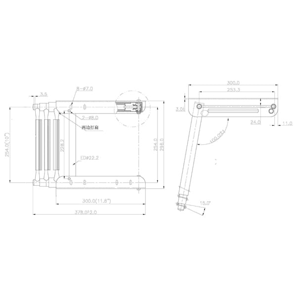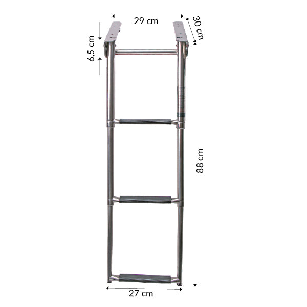 Badestige til platform i højglanspoleret AISI 316 rustfrit stål. Rør Ø 25 mm Med 3 skridsikre trin