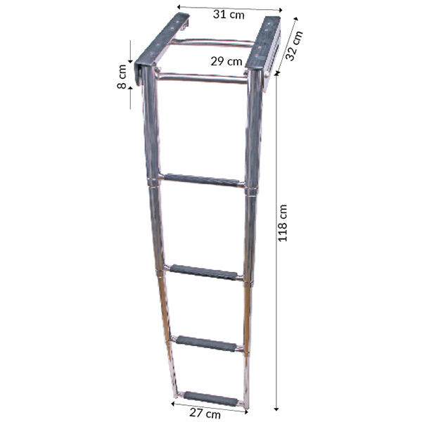 Badestige til platform i højglanspoleret AISI 316 rustfrit stål. Rør Ø 25 mm Med 4 skridsikre trin