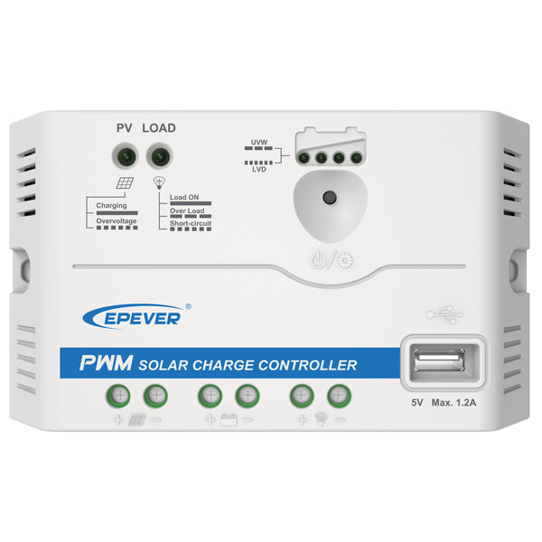 I pakken får du både et solpanel med beslag, en solcelleregulator og et ledningssæt til tilslutning til et 12V batteri. Regulatoren har desuden en USB-udgang til direkte opladning af mobiltelefoner og anden USB-baseret elektronik.