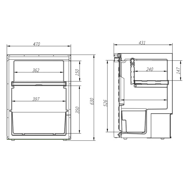 Kompressorkøleskab, 12/24V DC - 5/2,5 Amp - 60W.