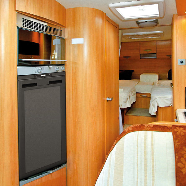 Kompressorkøleskab, 12/24V DC - 6/3 Amp - 80W · Højre eller venstrestillet låge · Med LG kompressor · Fjern frys for større kølerum · Opbevaringsvolumen: ca. 83,2 liter, inkl. 8,7 liter fryseboks