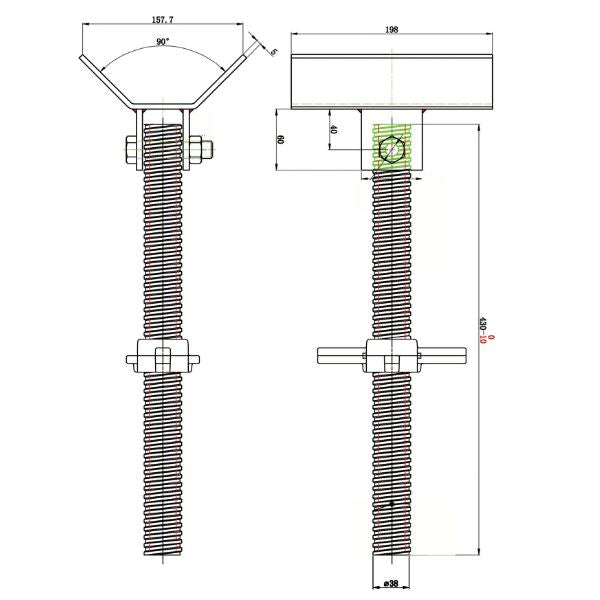 Kurvet topplade til bådstøtte. Inklusiv gevindstang