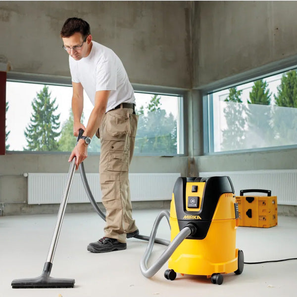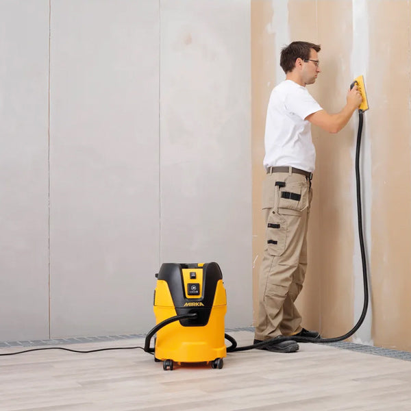 5m ledningen er også en optimal længde til en kompakt støvsuger. Push&Clean filterrensesystemet muliggør en længere levetid og bedre sugning. Denne støvsuger er udstyret med en AutoStart-funktion, der sparer tid og strøm for brugeren. Mirka® Dust Extractor 1025 L er velegnet til både tørre og våde anvendelser (fjern støvposen før våd brug og rengør filter før og efter våd brug). Denne Mirka® Dust Extractor 1025 er designet til brug med Mirka® PowerTools, men har ikke en antistatisk funktion. Hvis antistatisk evne er nødvendig, anbefaler vi at bruge Mirka® Dust Extractor 1230