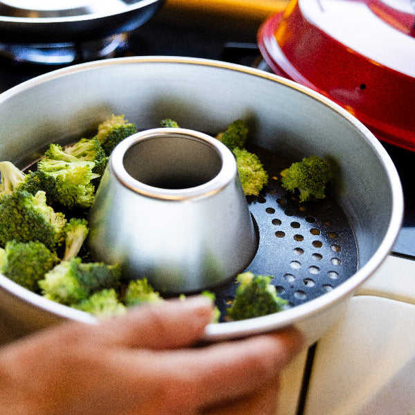 Skræddersyet til Omnia. Fremstillet af rustfrit stål kvalitet AISI 304. Belagt på begge sider med keramisk 100 % PTFE-fri overflade, som opfylder FDA-standard (US Food and Drug Administration) samt LFGB-standard (Lebensmittel- und Futtermittelgesetzbuch).