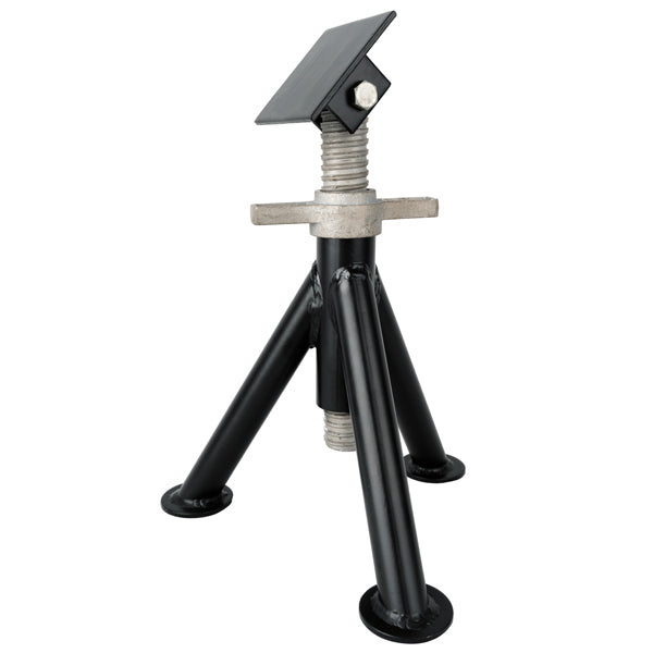 Justerbar bådstøtte/buk i massivt stål. Sammenfoldelig og pulverlakeret. Komplet inklusiv stativ, gevindstang og plade. Justerbar mellem 35-55 cm. Max belastning: 3000 kg.