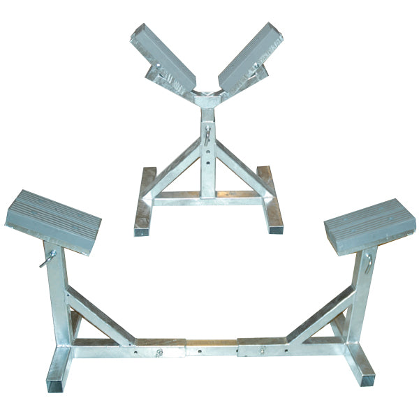 Bukken kan justeres i bredde og højde, så den passer til netop din båd og har fine grå puder, som båden støtter på.