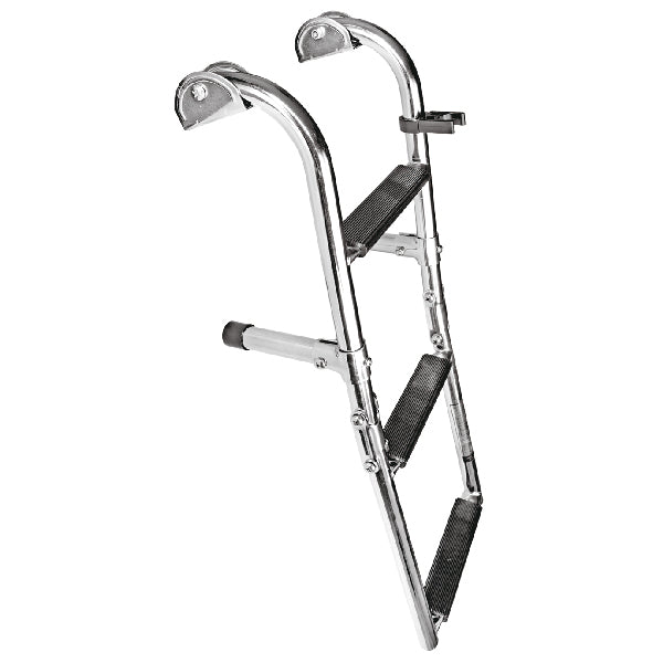 Trin der er belagt med sort PVC, gør trinene skridsikre. Leveres med clips til at holde stigen sammenklappet. Vælg mellem: 3-trins badestige med 2 faste + 1 foldbart trin 4-trins badestige med 2 faste + 2 foldbare trin