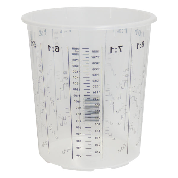 Blandingsbæger til korrekt opmåling af 2-komponent maling, fortynder, epoxy og polyester etc. Resistent over for opløsningsmidler. 2,2 liter bægeret passer til en 100 mm rulle. (ikke inklusiv).