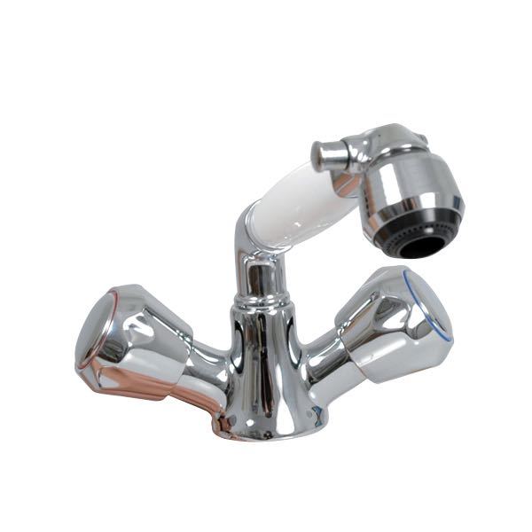 Forkromet blandingsbatteri med metalhåndtag og udtræks-plastbruser med on/off og justerbar vandstråle. 1,5 m udtræksslange.