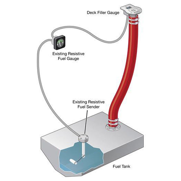 Eksklusiv dækspåfyldningmed blå LED niveau tank indikator. Højglanspoleret 316 rustfrit stål. Anvendelig til 12 eller 24V systemer, nem at installere og tilslutte til det eksisterende analog tank måler instrument.