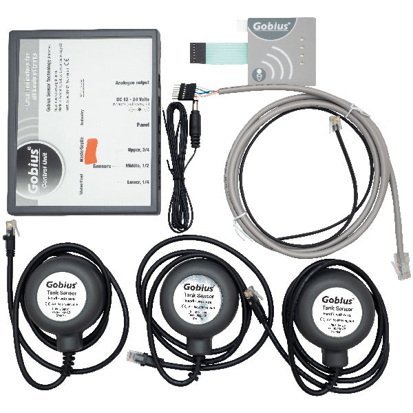 LED’er i forskellige farver viser fire niveauer; tom, 1/4, 1/2 og 3/4 fuld. 3 sensorer monteret (limet) med et 3M tape på ydersiden af din tank.