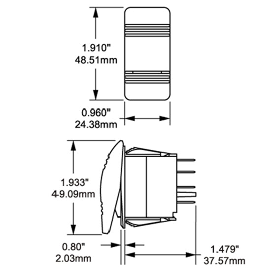 ”Throw” refererer til aktuatorens yderposition: ST-kontakter lukker et kredsløb i kun én position. Den anden position af håndtaget er slukket. DT-kontakter lukker et kredsløb i Up-positionen, såvel som Down-positionen (On-On). En DT-kontakt kan også have en midterposition (ofte On-Off-On).