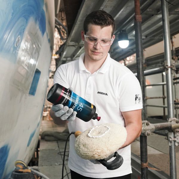 Polarshine 45 kan anvendes i både reparations- og produktionsprocesser, og er ideel til polering af hvide og lyse gelcoat overflader. Til mørkere farver anbefales efterpolering med Polarshine 10, for at fjerne hologrammer.