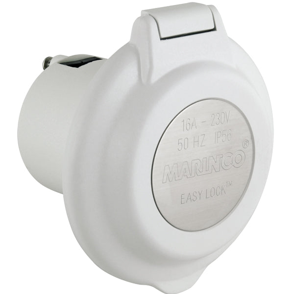 Marinco landstrømsindtag i glasfiber/polyester med ”Easy Lock System” der er vandtæt.