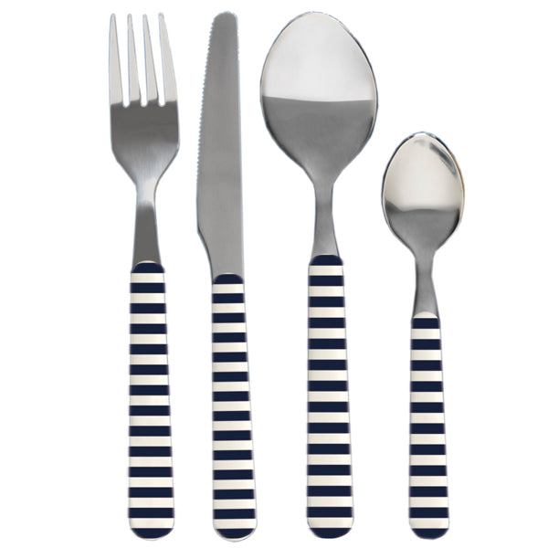 Bestiksæt rustfrit stål 24 dele Brudsikkert melamin service og MS glas i høj kvalitet, med et diskret præg og et eksklusiv nautisk design - elegant med karakter. Tåler opvaskemaskine og mikroovn, dog max 90 sek.