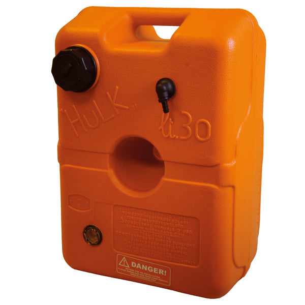 Kraftig tank som er RINA godkendt · HDPE - Polyethylen plast med høj densitet · Ø 8 mm slangetilslutning med filter · Udluftning i tankdæksel · 22L og 30L er inkl. tankmåler