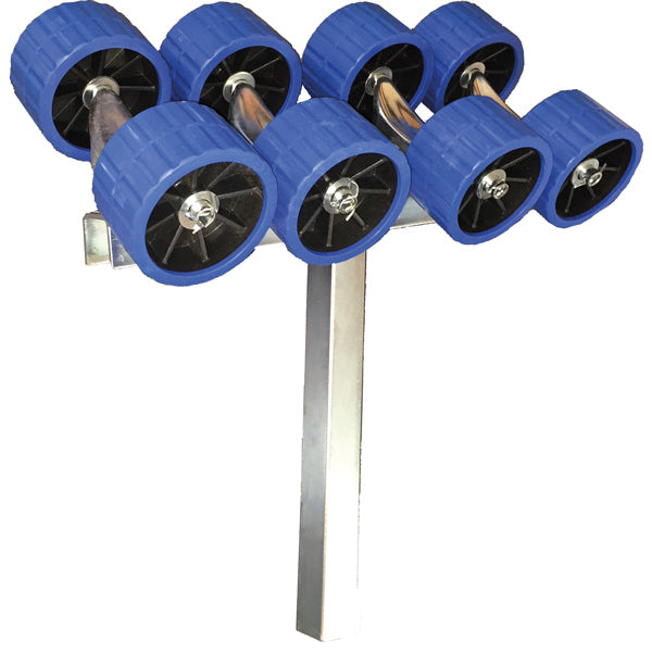 Blå siderulle med 8-ruller til trailer, som giver optimal støtte til båden.
